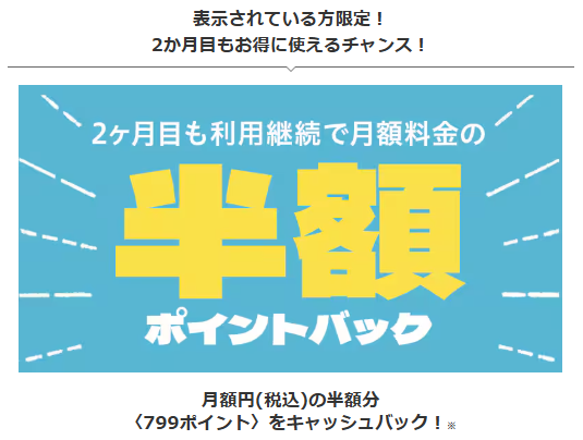 【2か月目も利用継続で月額料金の半額ポイントバック】