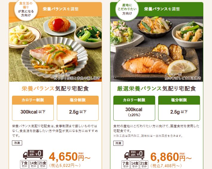 | 塩分制限気配り宅配食 | 5184円 | 740円 |