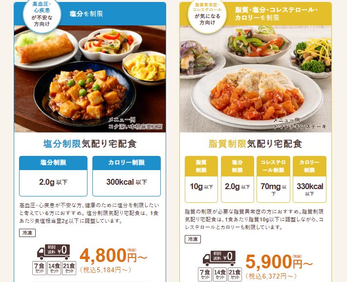 | 脂質制限気配り宅配食 | 6372円 | 910円 |