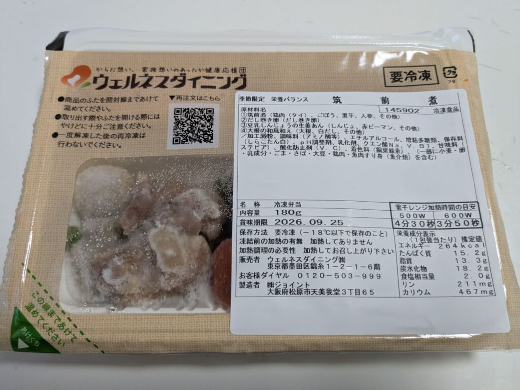 ウェルネスダイニングのお弁当は、すべて冷凍で届きます。