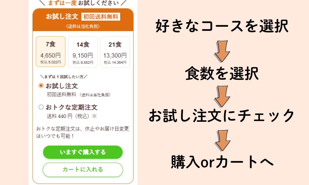 - まずは1回だけのお試し注文