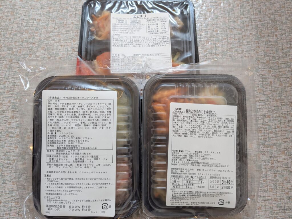 主菜と副菜を含む3品のおかずがセットになっているため、外食やコンビニ弁当と比べてコスパが良いと感じました。