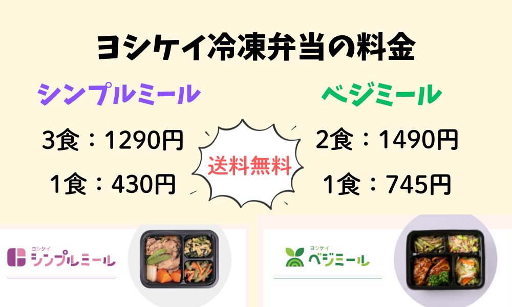 ヨシケイ冷凍弁当シンプルミールの料金と1食あたりの料金
